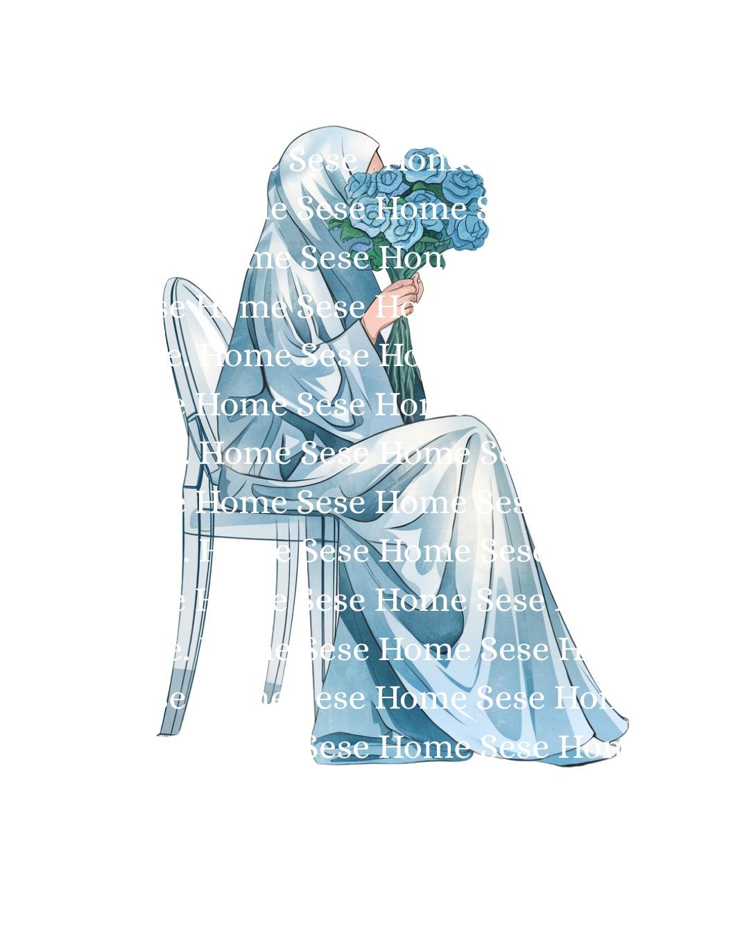 / Visage caché : Femme abaya bleue bouquet de fleurs