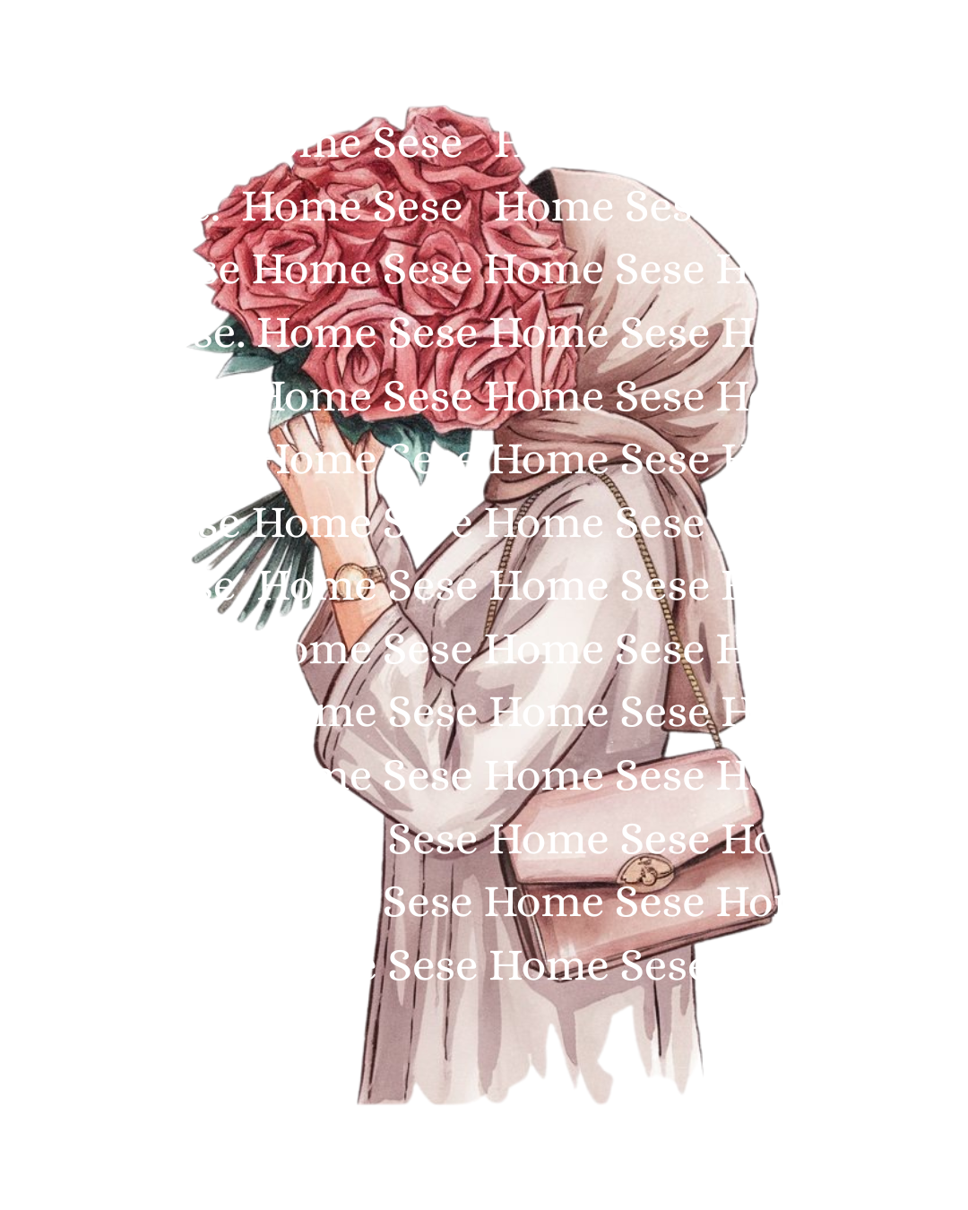 Visage caché : Femme abaya beige rose bouquet de fleurs