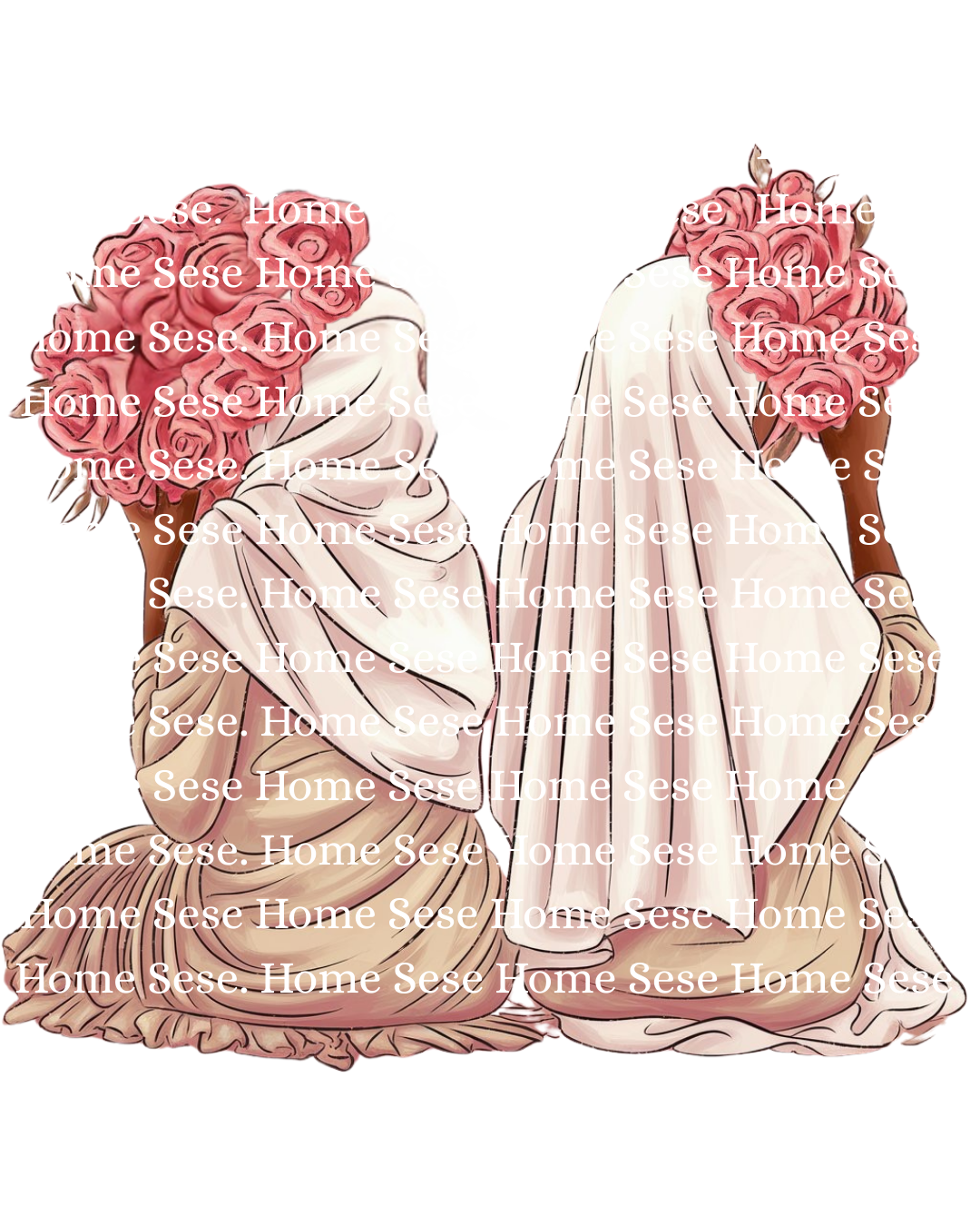 / Vue de dos : Femmes peau foncé de dos abaya beige bouquet de fleurs
